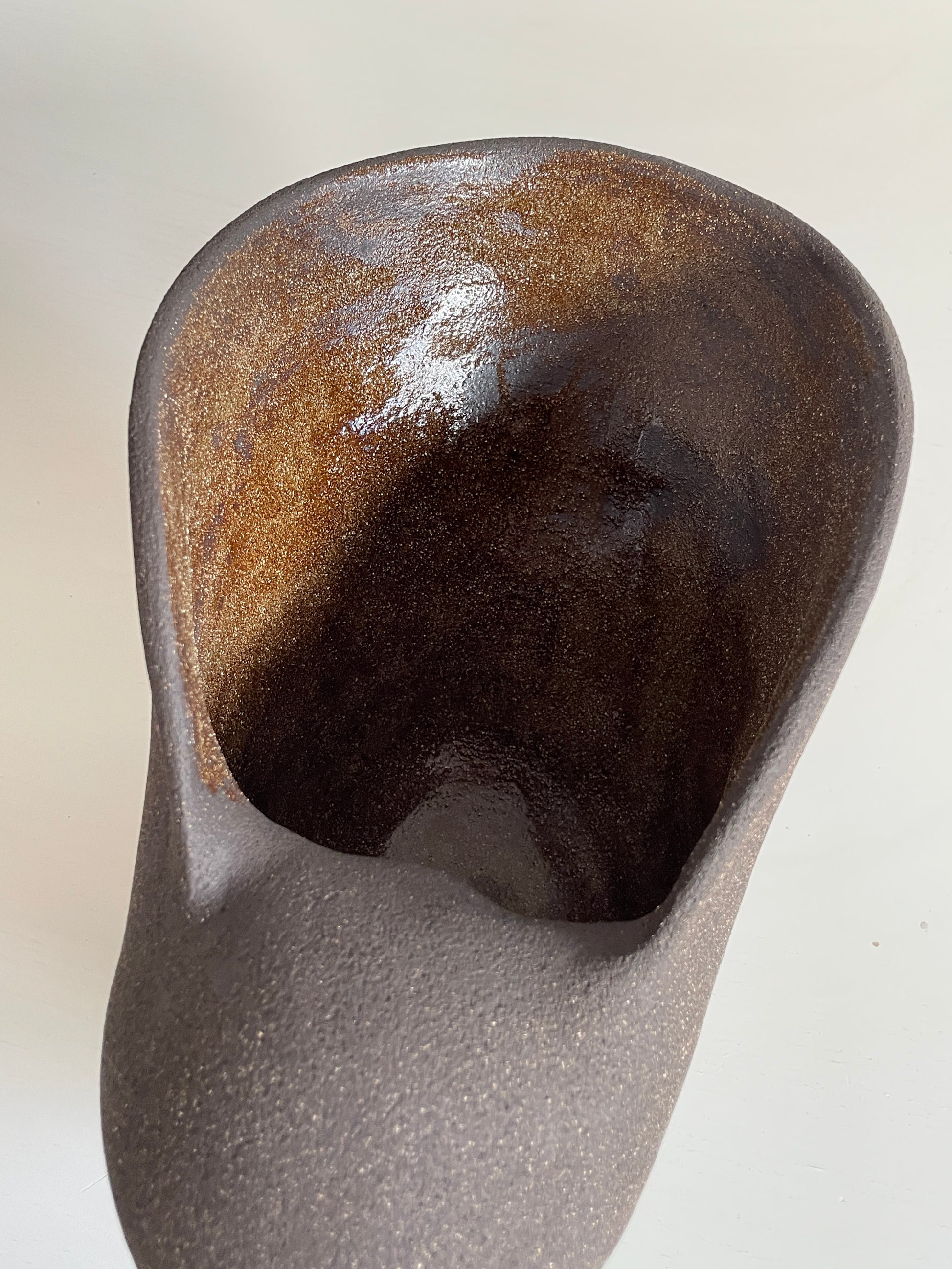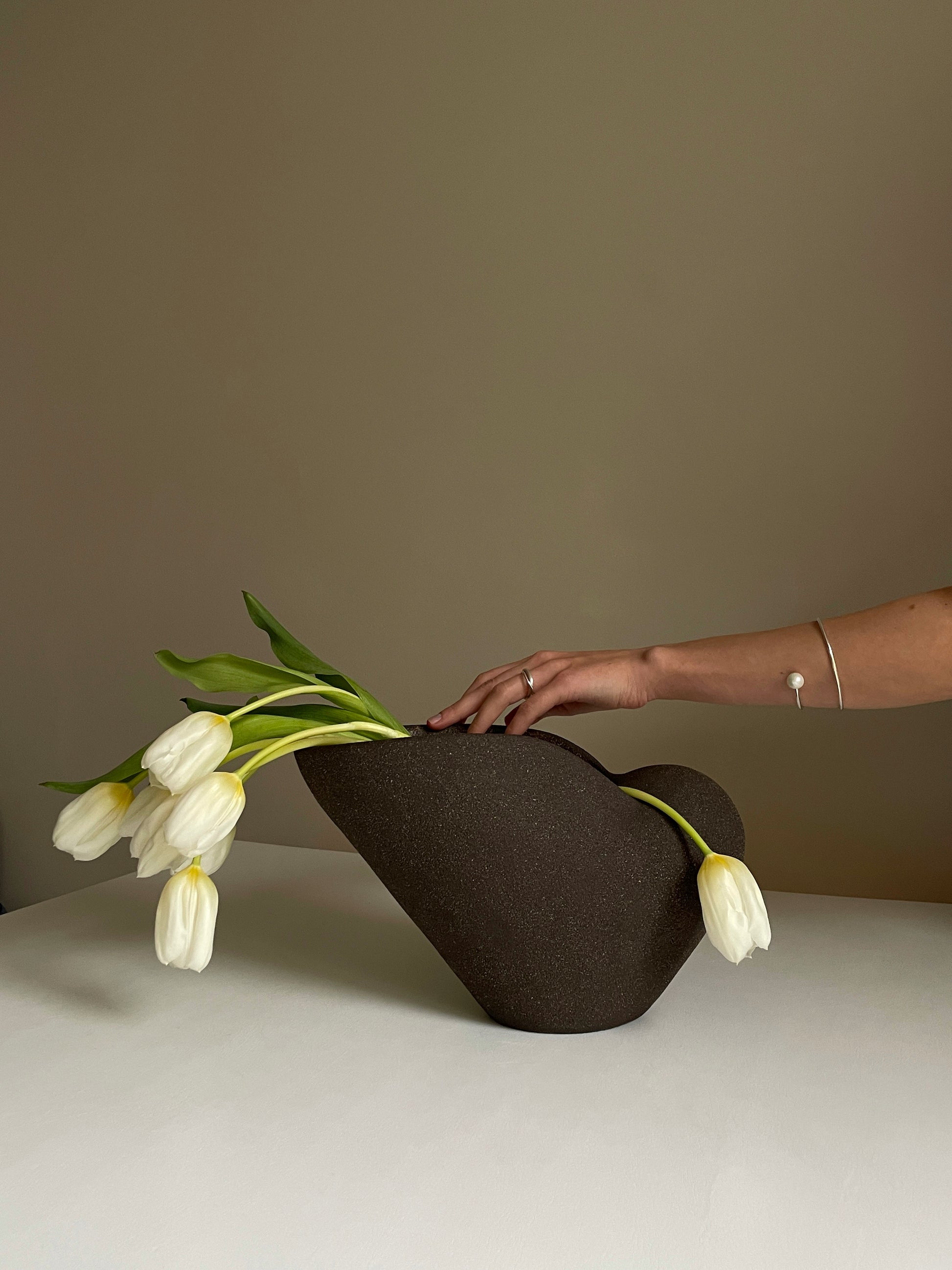 This vase was inspired by the iconic shape of a Nautilus, one of the most beautiful shapes in all of nature. Hand built stoneware clay vase which can be used for natural or dry flowers as well as a standalone object or a bowl.