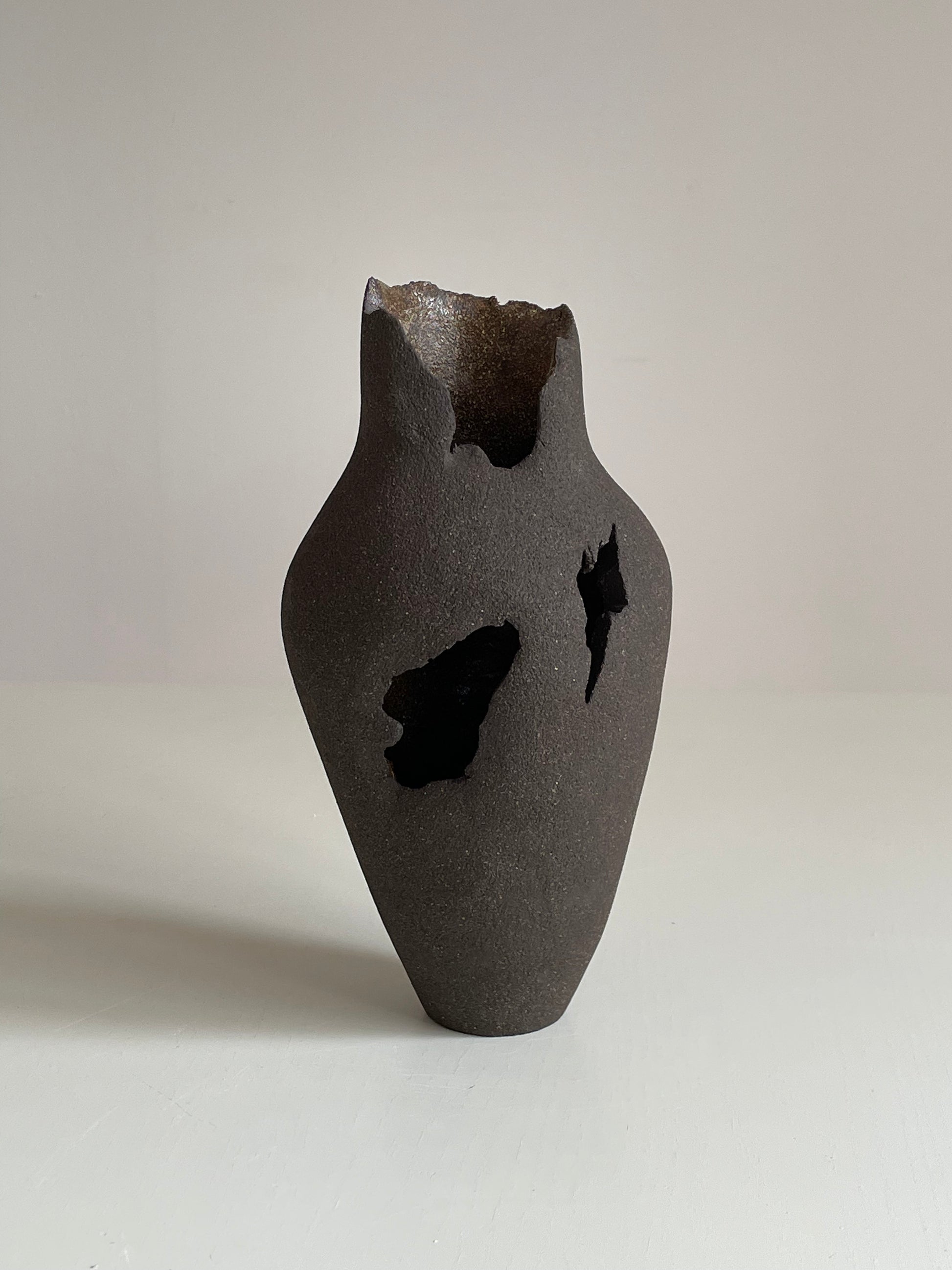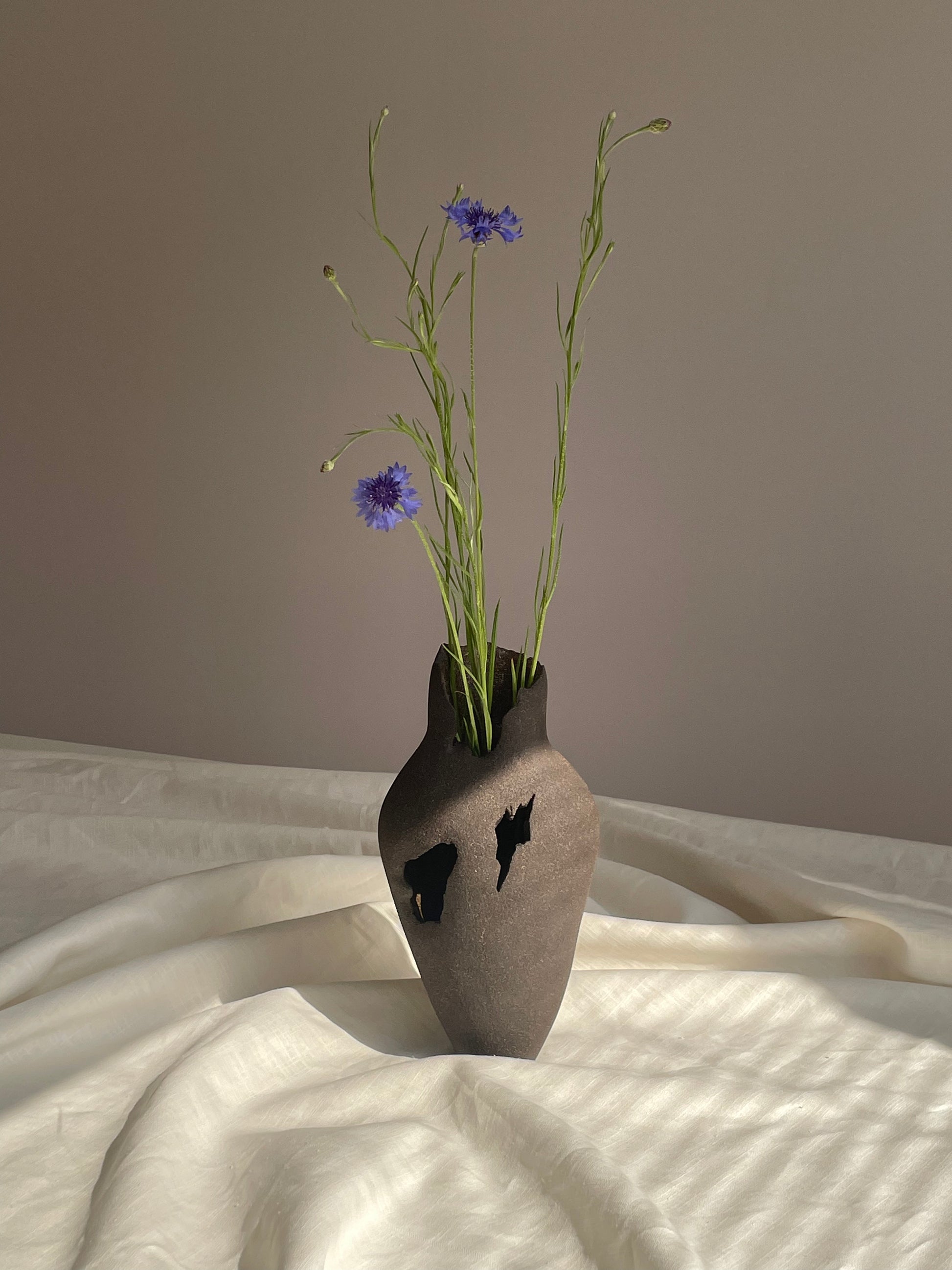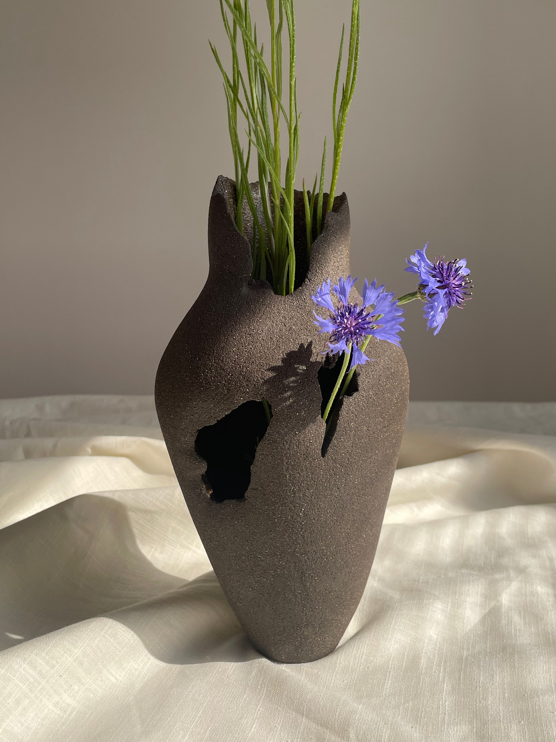 The idea behind this piece is simple, yet important: if a flower can break through concrete and bloom, so can we break through any difficulties, become stronger and bloom with no limits in our minds. Hand built stoneware clay vase which can be used for natural or dry flowers as well as a standalone object.