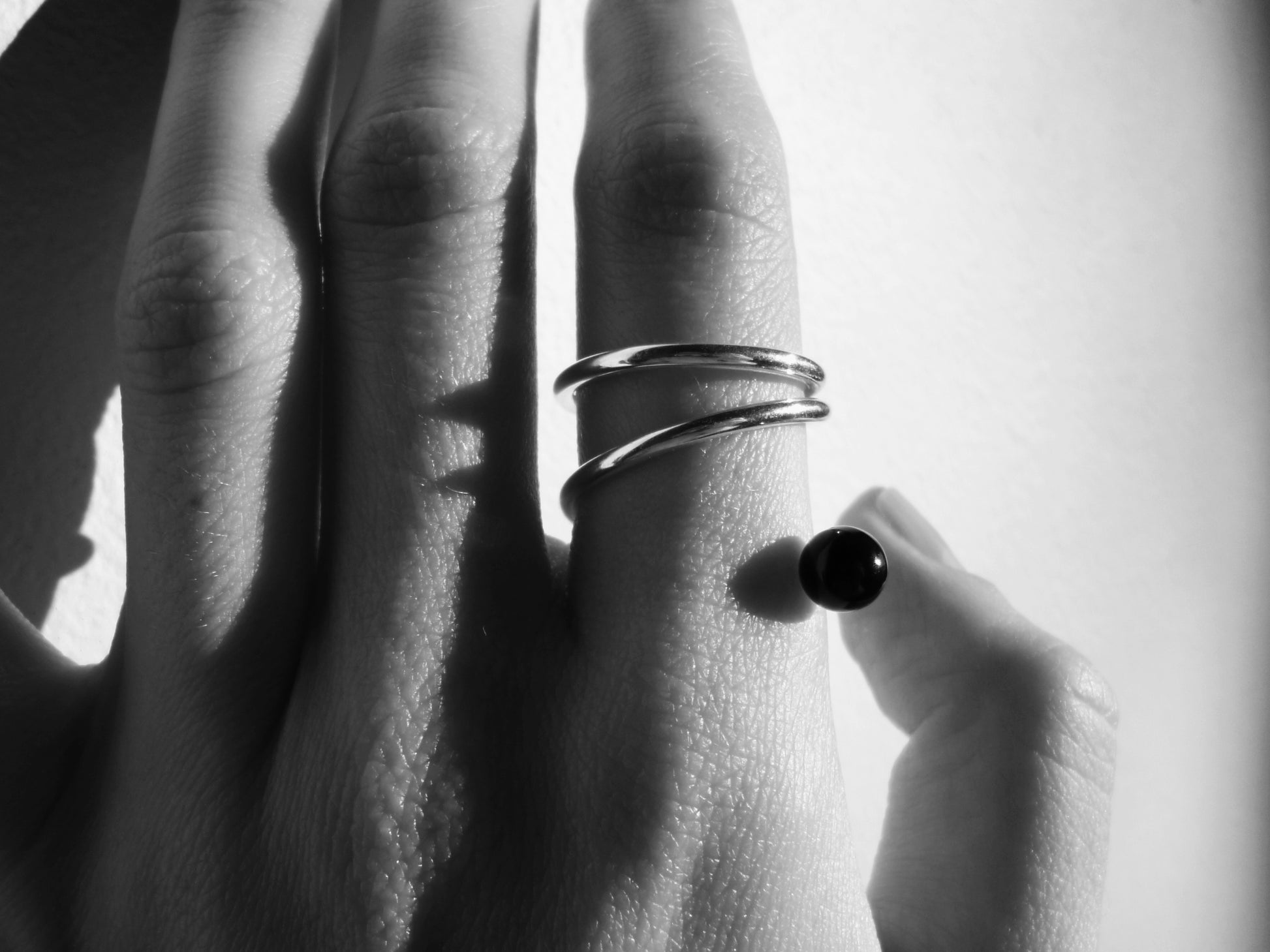 This ring forms two circles around your finger with a glimpse of onyx stone. Part of a collection inspired by Croisière by A. Calder, it reflects the interplay of spheres, curves, and the interconnectedness of its elements.