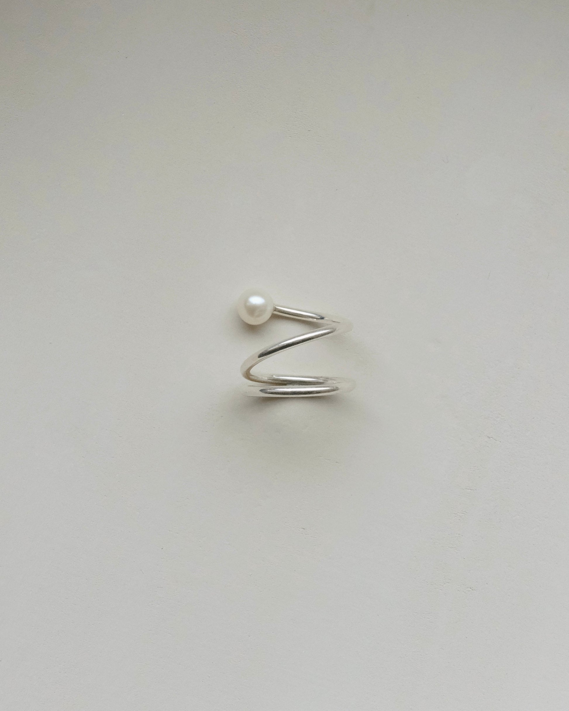 This ring forms two circles around your finger with a glimpse of pearl. Part of a collection inspired by Croisière by A. Calder, it reflects the interplay of spheres, curves, and the interconnectedness of its elements.