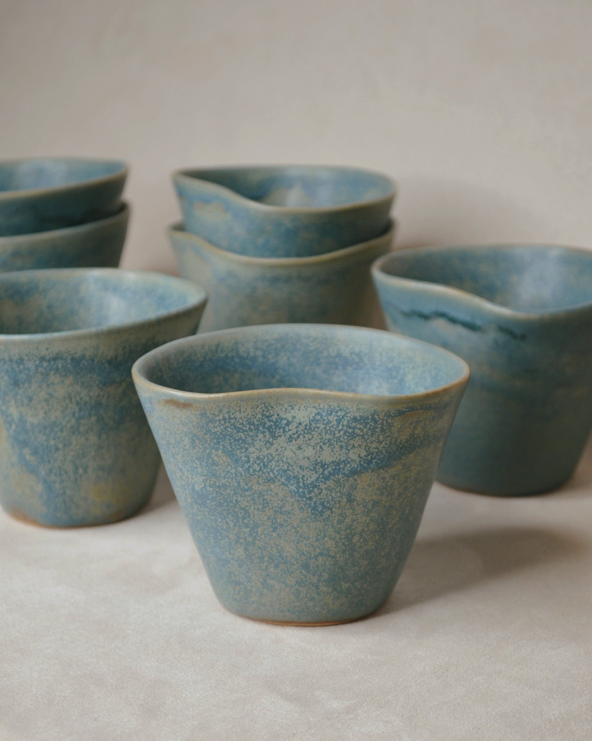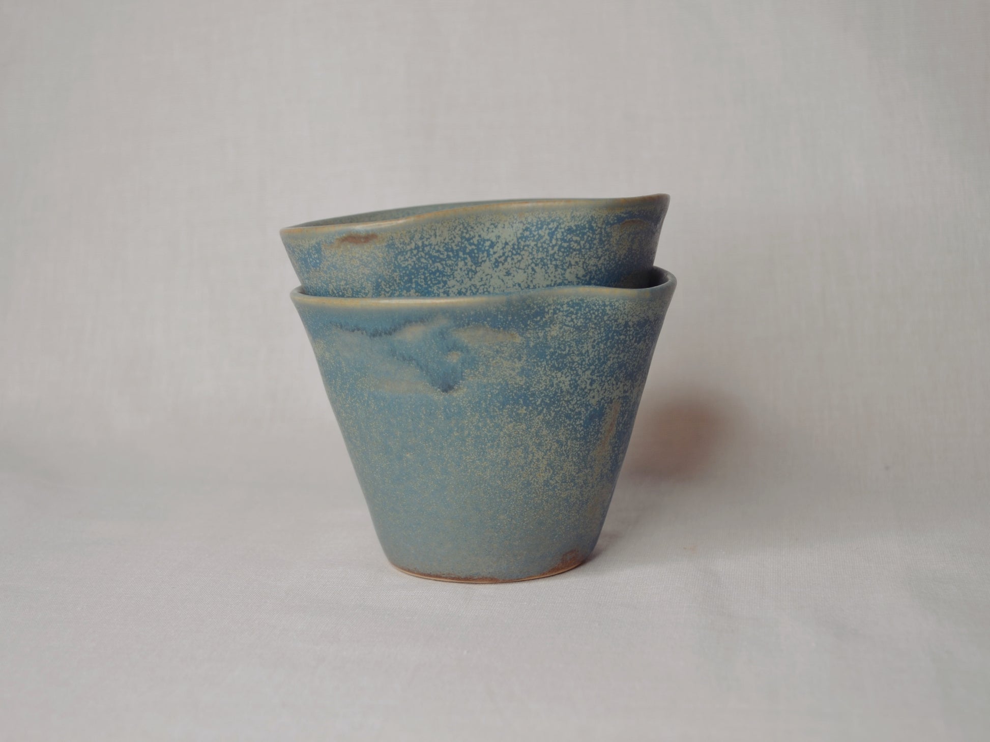Ceramic mug in a matte blue color with greenish specs. Perfect for your hot or cold beverages.