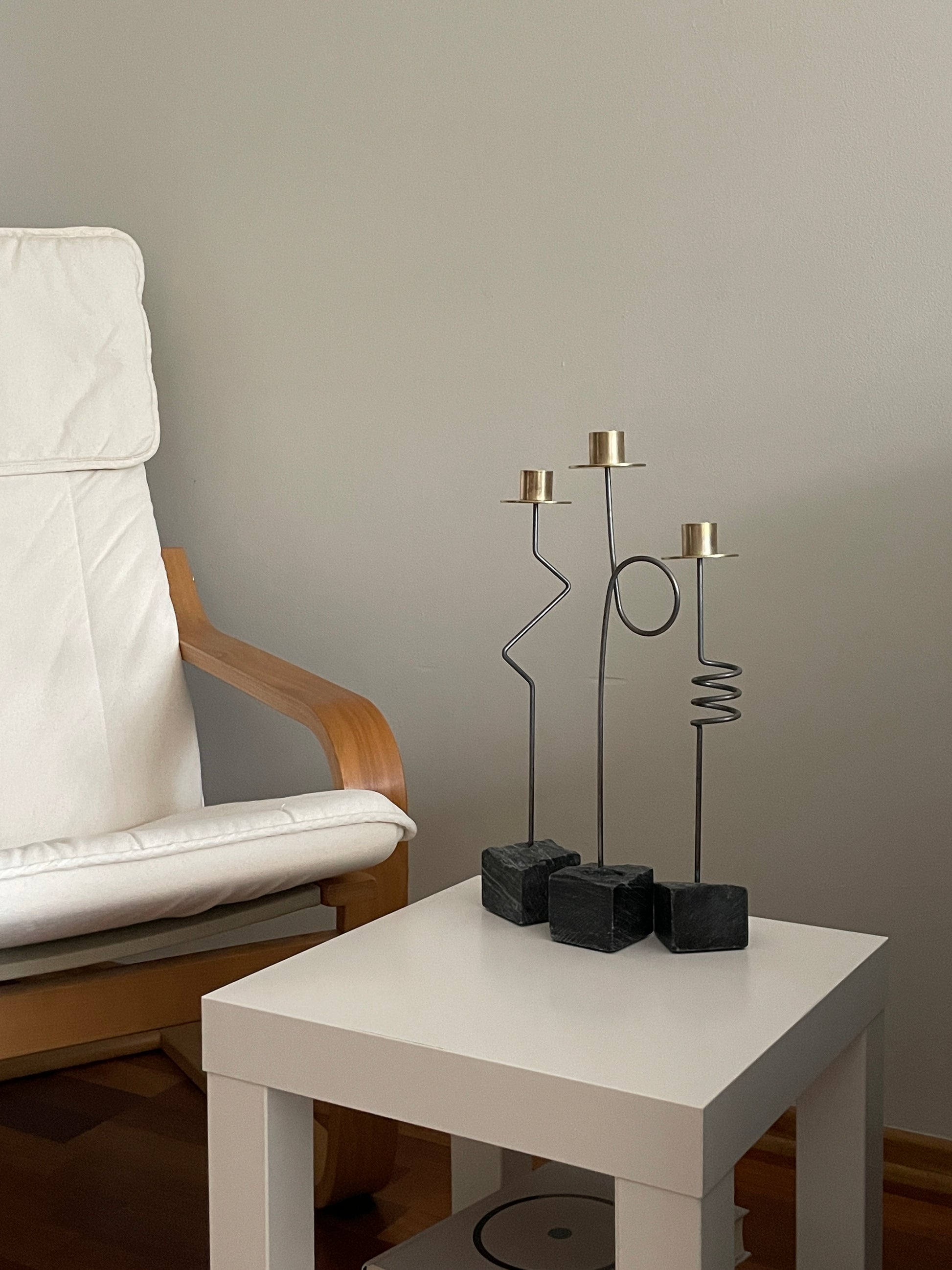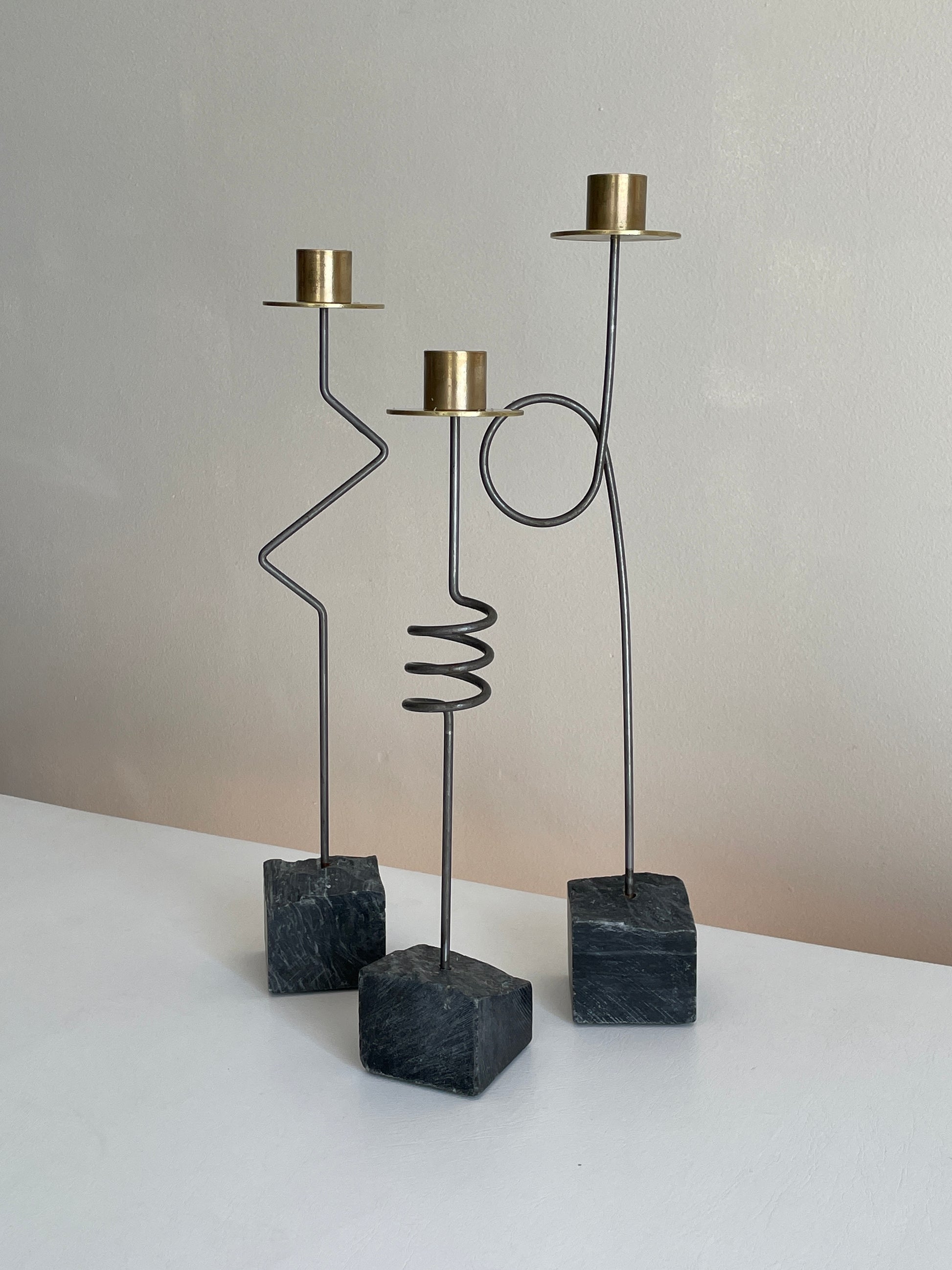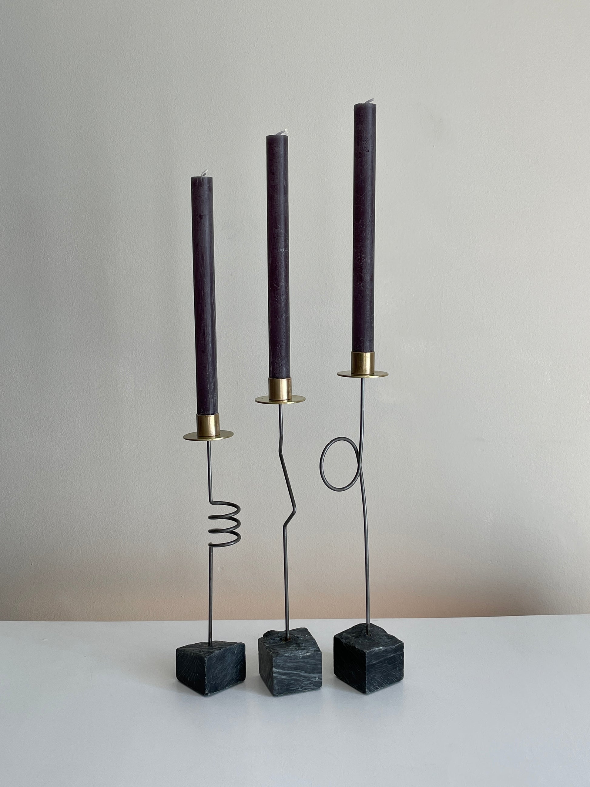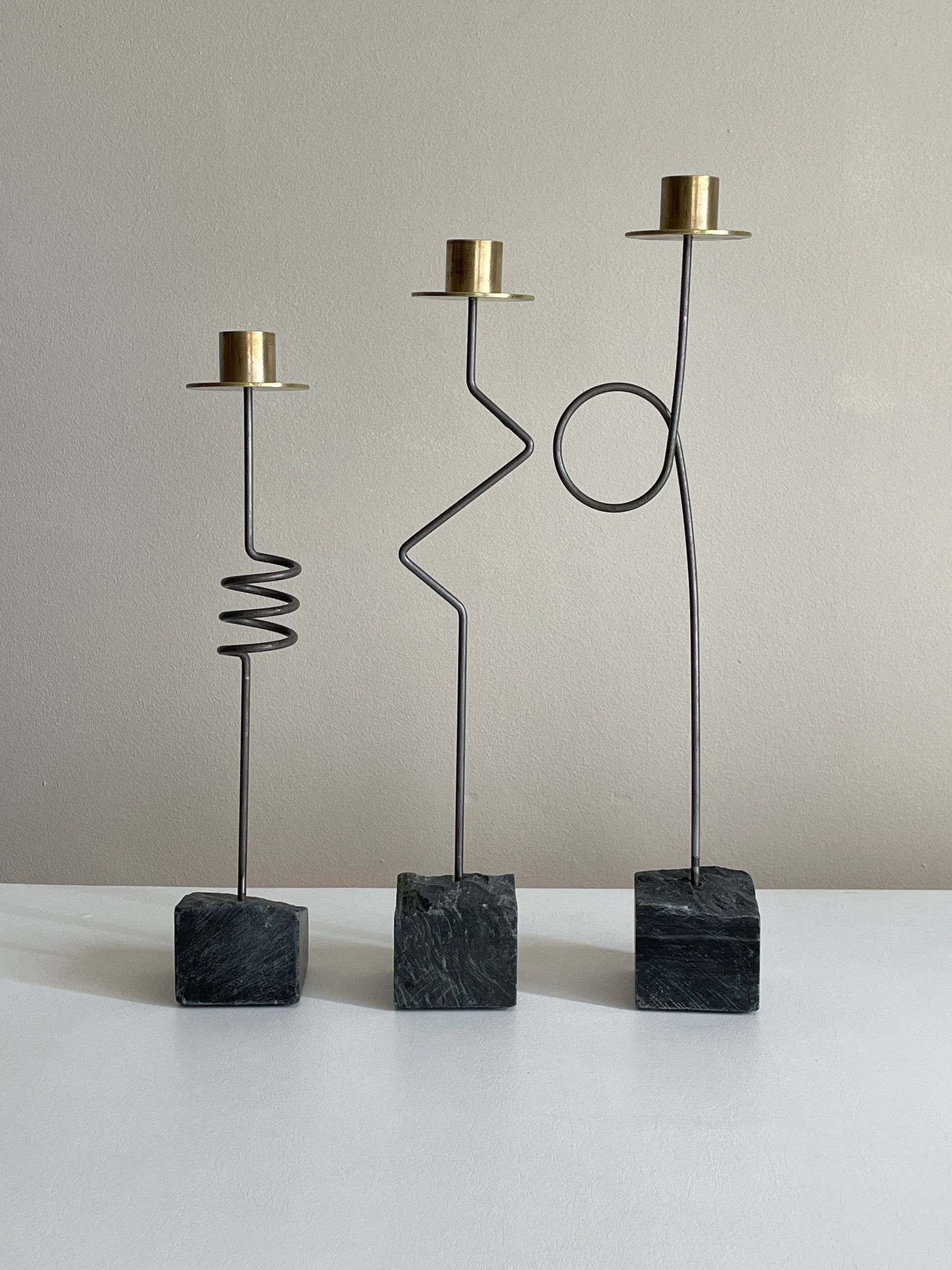 Postmodern Minimalist 1987's Ikea Kräsen candleholders by Ehlén Johansson Spiral and Zig Zag design. Great vintage condition with some signs of use, mainly on the top part. Three candles are included in a set.