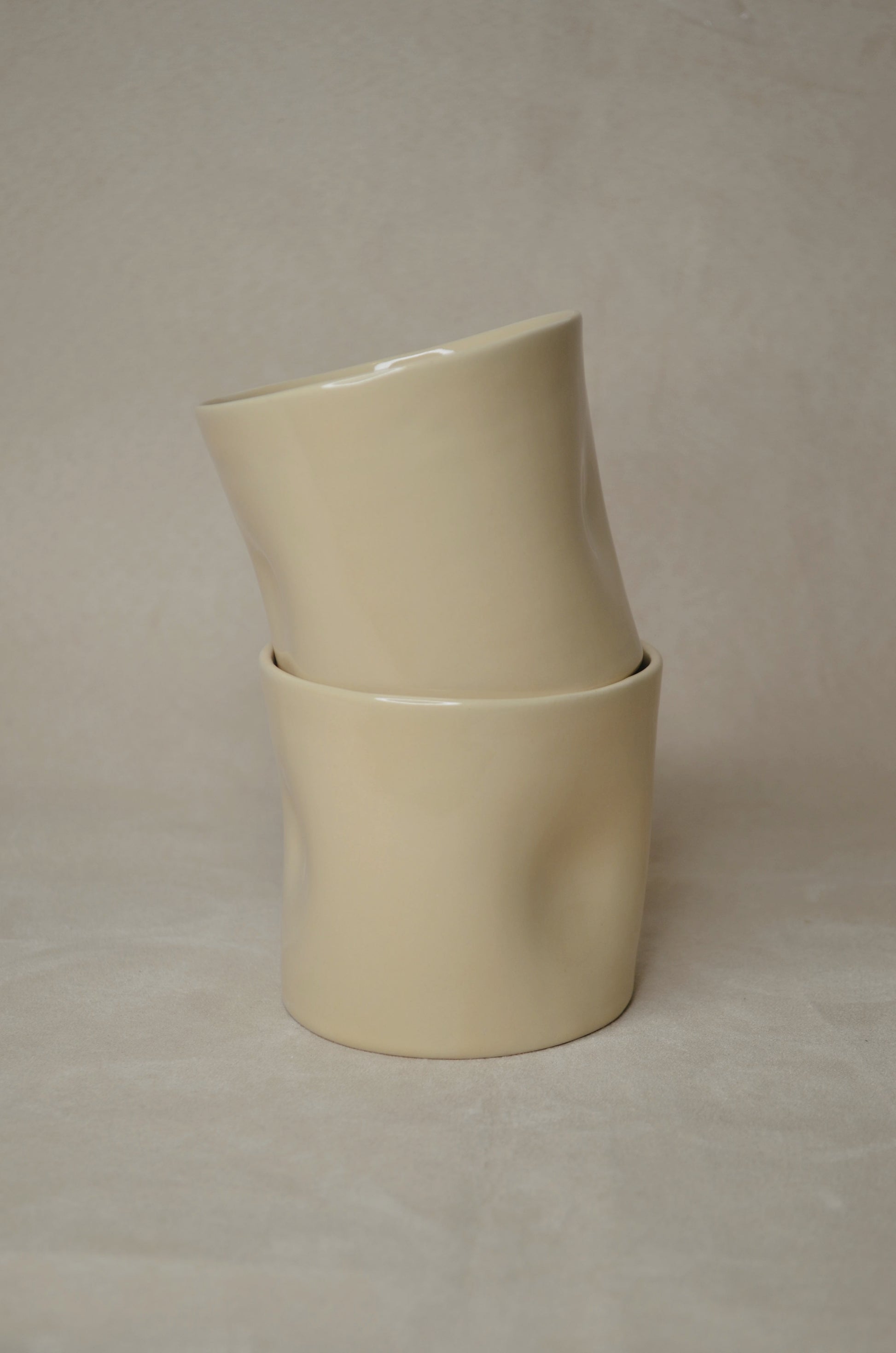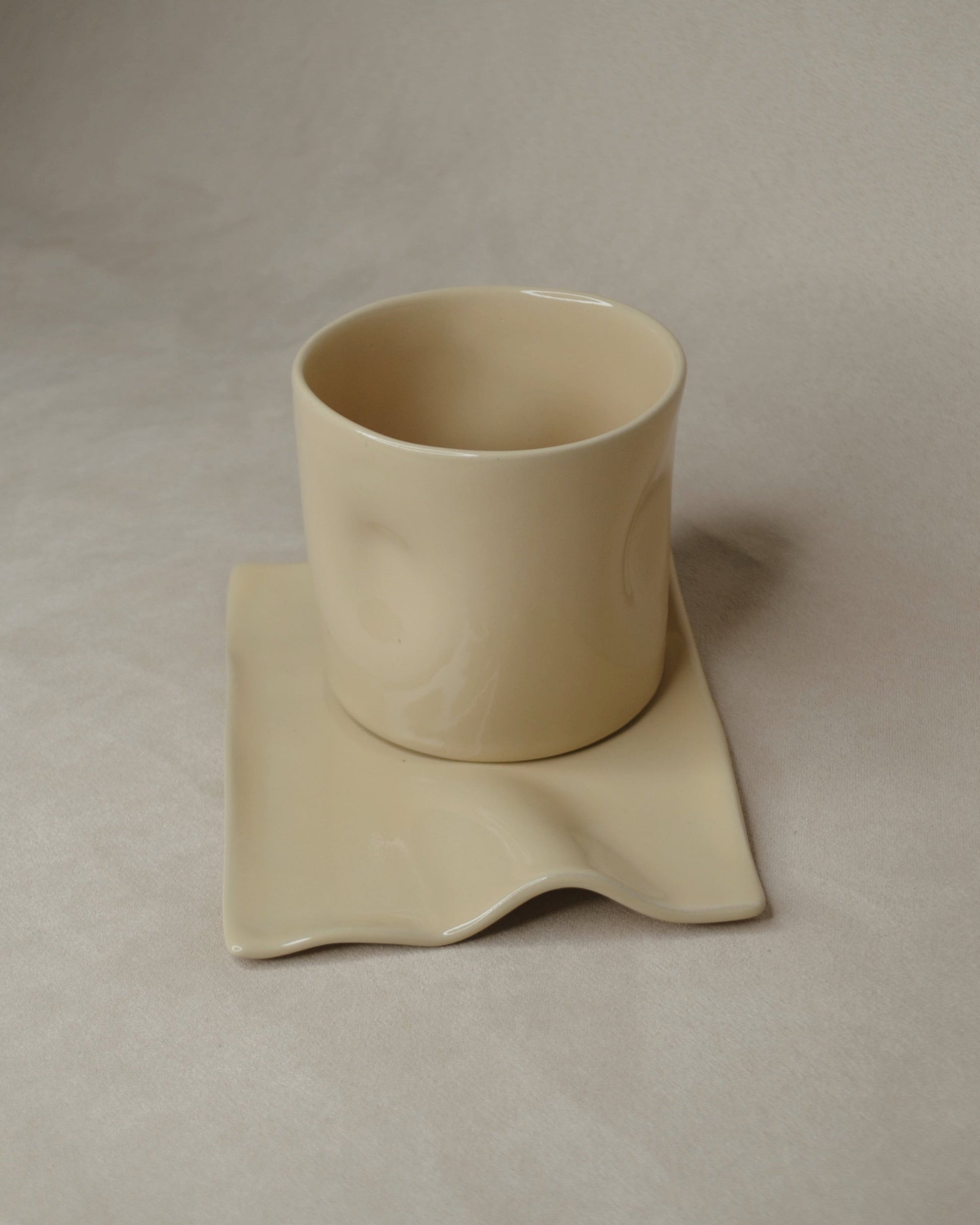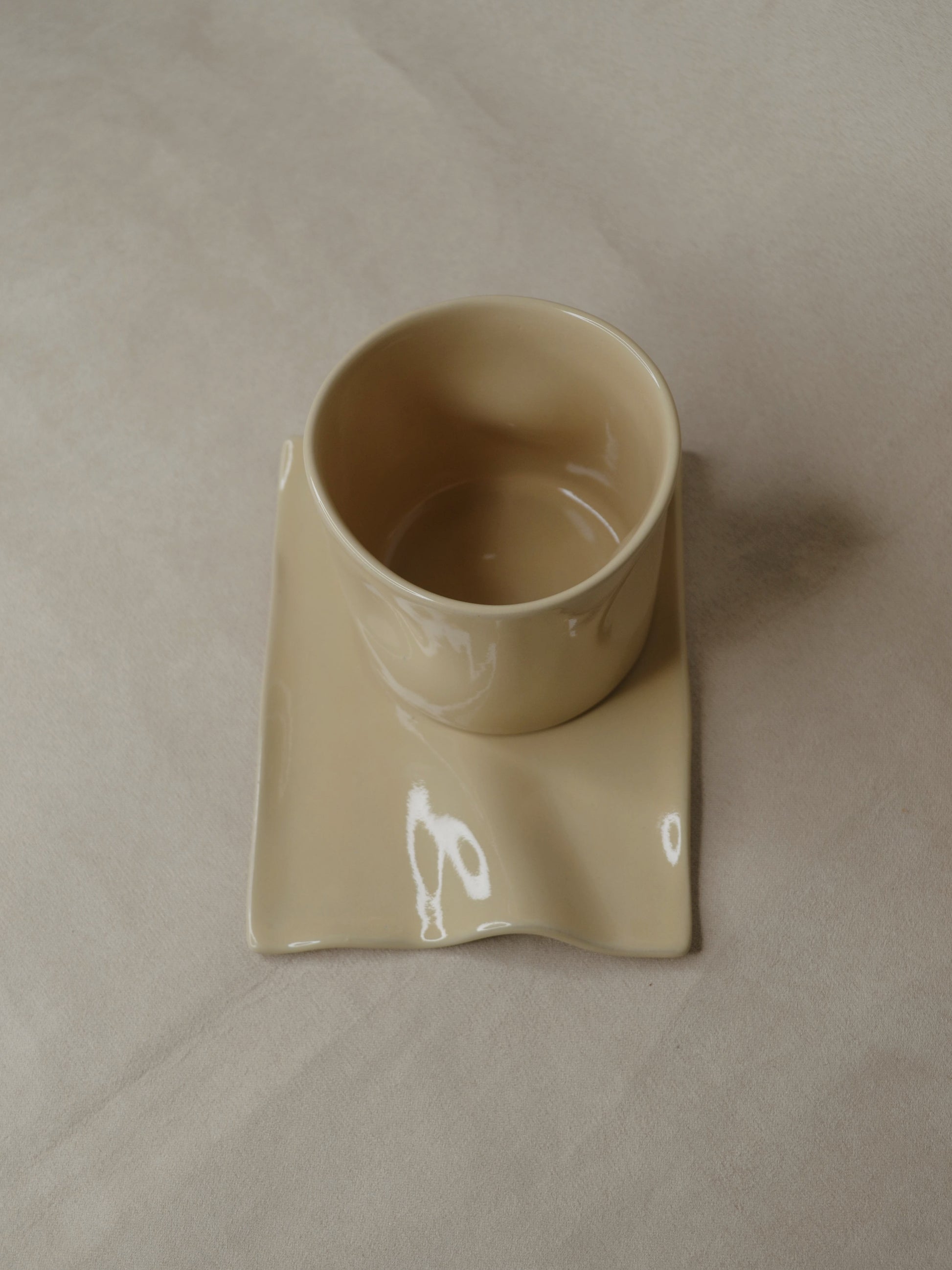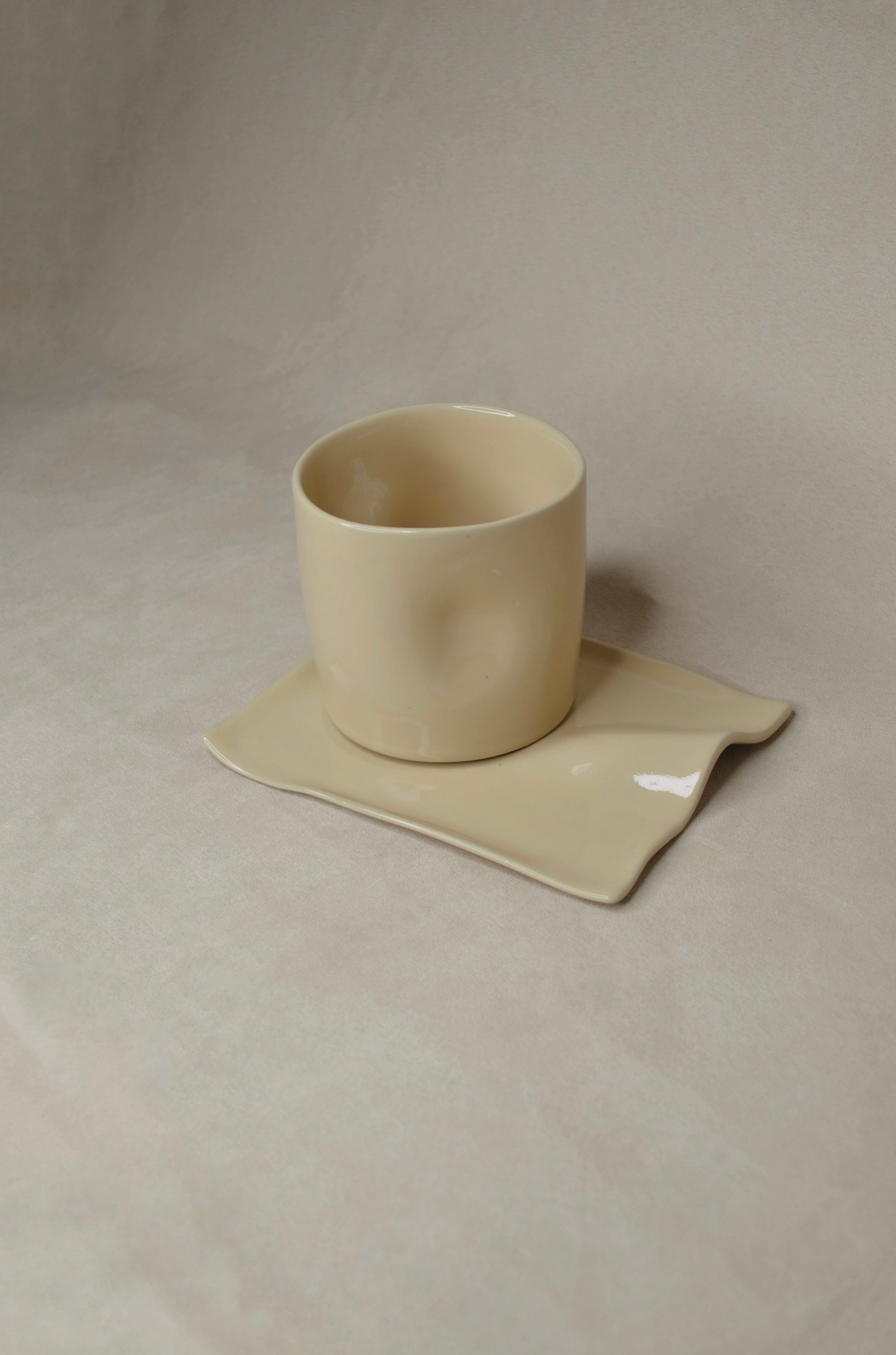 Set of ceramic mug and small plate in butter color. Perfect for your hot or cold beverages.